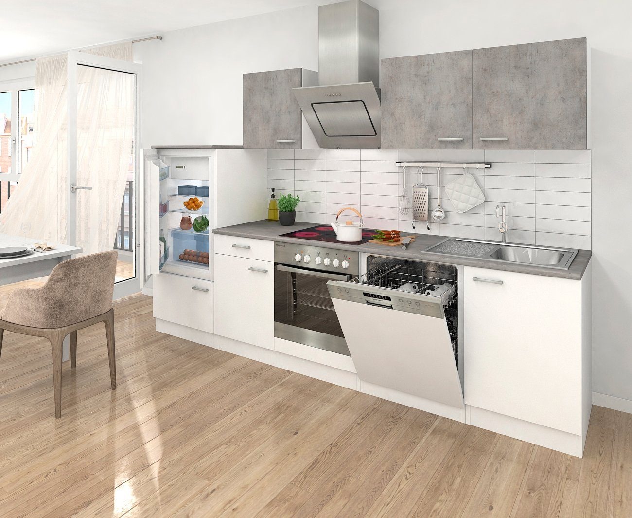 respekta premium kuchenzeile 220 cm grau hochglanz eiche grau kaufen bei obi