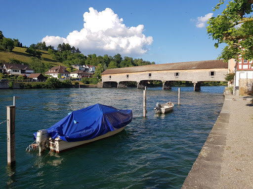 the historic covered wooden bridge over the rhine river bad saeckingen district of waldshut baden wuerttemberg germany europ covered bridges rhine river bridge